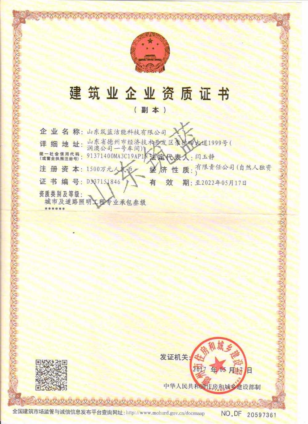 山東筑藍(lán)潔能科技有限公司創(chuàng)建于2015年,擁有建筑業(yè)企業(yè)資質(zhì)證書--城市及道路照明工程專業(yè)承包叁級(jí),是一家集設(shè)計(jì)、生產(chǎn)制造、安裝服務(wù)于一體的新能源企業(yè),專業(yè)從事太陽能路燈、LED路燈、高桿燈、庭院燈、景觀燈、中華燈、草坪燈、光伏設(shè)備、風(fēng)能發(fā)電設(shè)備的生產(chǎn)及銷售、安裝及售后服務(wù);同時(shí)還從事凈水設(shè)備、空氣凈化器、光伏采暖設(shè)備、燃?xì)鉄崴鳌C(jī)電設(shè)備、玻璃鋼制品的銷售、安裝,LED照明及亮化產(chǎn)品、太陽能熱水器、光伏設(shè)備及元器件生產(chǎn)、銷售、安裝;建筑裝飾裝修工程施工、兼建筑幕墻工程施工、建筑智能化工程施工等產(chǎn)品專業(yè)生產(chǎn)加工的公司,擁有完整、科學(xué)的質(zhì)量管理體系。